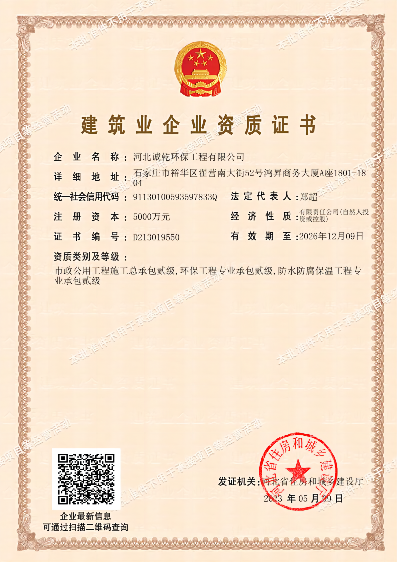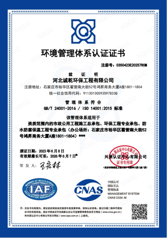 公司具有市政公用工程施工總承包貳級(jí)、環(huán)保工程專業(yè)承包貳級(jí)、防水防腐保溫工程專業(yè)承包貳級(jí)資質(zhì),通過(guò)了質(zhì)量管理體系認(rèn)證(ISO9001)、環(huán)境管理體系認(rèn)證(ISO14001)、職業(yè)健康安全管理體系認(rèn)證(ISO45001),充分保證產(chǎn)品的質(zhì)量達(dá)到標(biāo)準(zhǔn)要求,持續(xù)開(kāi)發(fā)新工藝、新產(chǎn)品,提高自身生產(chǎn)能力,提高產(chǎn)品質(zhì)量。
